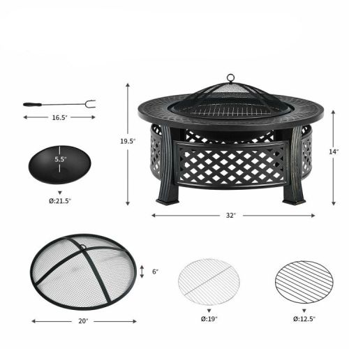 Rustic Steel Outdoor Fire Pit with BBQ Grill with Poker and Mesh Cover
