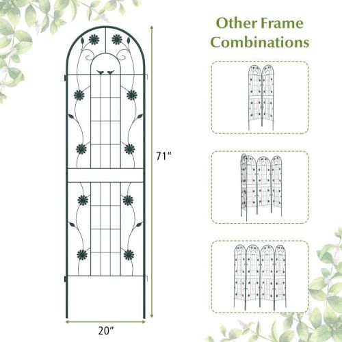 This Set of 2- Outdoor 6-ft Galvanized Steel Garden Trellis in Green Metal Finish is constructed of galvanized steel, ensuring unrivaled sturdiness and rust resistance to hold heavy plant for longer time. The trellis features 10.5″, 11″ long legs, allowing for effortless insertion into the ground, providing a stable foundation. With impressive heights of 71″, the metal trellis offers an expansive area for your climbing plants and vines to reach new heights. By providing an abundance of vertical space, your plants can thrive as they eagerly stretch towards the sun’s nourishing rays. Apart from being used as a plant support for climbing plants. The 2 pack trellis set can be combined with a garden fence, ensuring the protection and privacy of your cherished plants. Plus, you can connect 2 or more trellis in an A-shape frame for growing cucumbers or other climbing vegetables. Designed with enchanting birds, flowers and leaves, the tall garden fence will effortlessly add a touch of timeless elegance and retro charm to your garden, lawn, or yard. Moreover, you have the freedom to arrange more trellises to different layouts according to your unique requirements. Coming with complete components and a detailed instruction manual, the assembly process of the wire lattice grid panel is a breeze. Besides, the 2 pack fence trellises are designed with an effortlessly interlocked connector, allowing for quick setup.